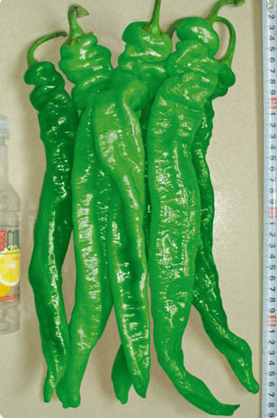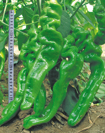 简介:中早熟特长螺丝椒,果实浓绿色,果面多皱褶,但条形顺直,易于捆扎和装箱。 果长约30-42cm,果粗约4.0-5.0cm,单果重约80-130g,最大果可达150g以上。皮薄质嫩,味辣。 植株长势强,连续坐