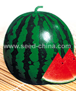 | 简介:(耐重茬,特大果,高糖,高产,不裂瓜,不空心)该品种亲本源自美国。早熟,坐瓜后26天成熟,长势强,易坐瓜。果实高圆型,果皮绿色覆深墨绿色条纹,清晰美观,商品性好。瓜肉红色,肉质细脆,甘甜多汁爽口, |