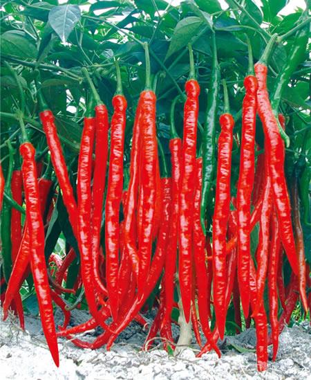 简介:早熟,生长势强,始花节位7节,株型开张,株高55cm,株幅60cm,细长羊角形,果长21cm,果粗1.6cm,辣味中等。嫩果绿色,老熟果鲜红色,单果重27g,单株挂果60个左右,适应性广,高抗疫病、病毒病、炭疽病。耐