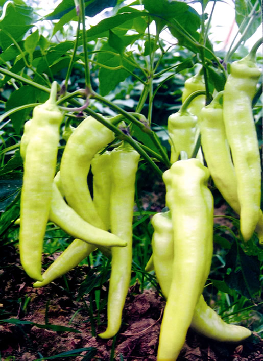 | 简介:中早熟F1杂交种,生长势强,果实牛角形,果实成熟时由淡绿色转为鲜红色,味甜肉厚,果面光滑,椒红素含量极高,品质佳,果型18X4.5厘米,单果重80-130克,抗病毒病和青枯病,耐低温性强。适于保护地和南 |