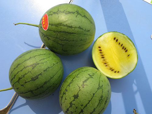 简介:亲本源自泰国和日本,抗病性特强,长势旺,易坐瓜。果实长椭圆型,果皮嫩绿色覆墨绿色窄条纹,早熟,坐果至成熟20天左右。果肉红色,含糖14度度以上,入口即化,品质好。果皮薄而韧,适时采收,不易裂瓜。
