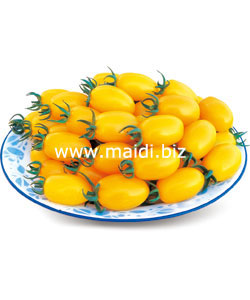 简介:产品描述:黄色小番茄,半停心型,早熟,长椭圆形,果色黄艳亮丽,单果重24克左右,挂果率高,耐热性特强,糖度9%以上,风味甜美,无酸味。果实硬,果肉厚,不易裂果,耐储运,综合抗病性强。适合秋延、越夏保