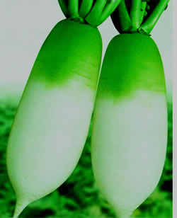 简介:1、低温条件下生长快,耐抽苔,播种后60天左右可收获的春美浓品种。2、根部白色,根状均匀,长圆筒形,曲根、裂根少。3、肉质白,味道好,品种优秀,适于腌渍加工。根长35-45cm,根茎7-8cm,根重1500~1800g。