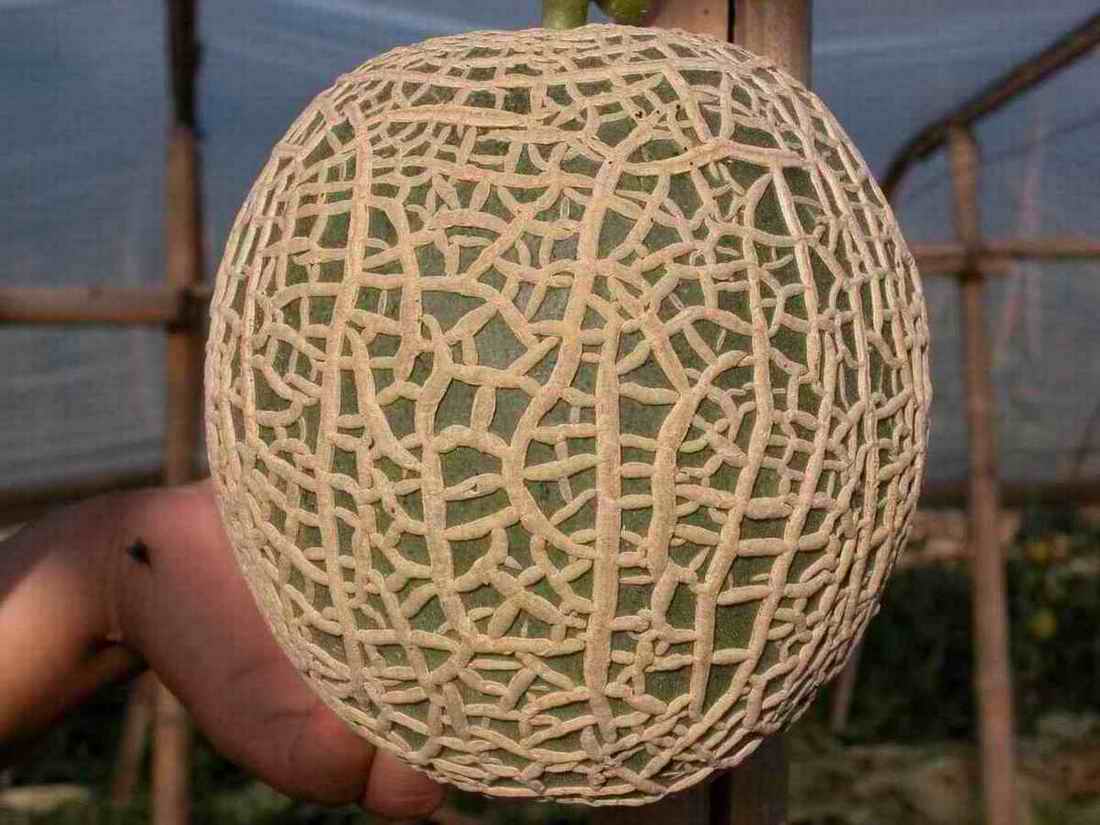 简介:晚熟品种,植株生长旺盛,叶大蔓粗,节间短,高抗。圆果,灰绿皮,网纹均匀、精美。一般开花后50—55天成熟、单果重1500克、糖度17—19度,最高21度以上,桔红肉,厚5厘米左右。不脱蒂,耐贮运。