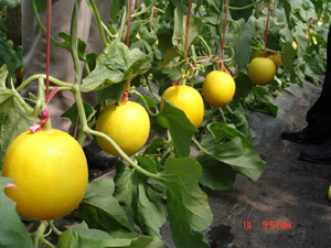 简介:极早熟品种,果实发育25天成熟,果实圆型,果皮金黄,光洁、靓丽,单瓜重1—1.5kg,果肉白色,肉厚4.5 cm。肉质细软,口感清爽, 含糖量16度以上。本品种生长中等,极易座果,低温弱光情况下果实膨大快,适