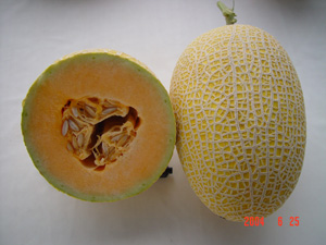 简介:属中早熟“哈密瓜”品种。植株生长旺盛,根系发达,具有较强的抗病性和抗逆性,适应性广,耐低温弱光,容易座果,果实椭圆形;单瓜重2~3公斤;果皮黄色,全密网纹,果肉桔红,肉质细腻、脆甜;中心折光糖含