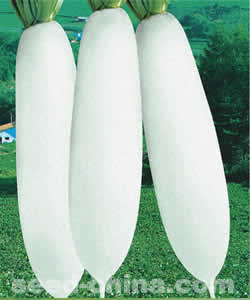 | 简介:特性:1.叶色浓绿,根肥大快,抽苔慢。2.长圆筒形,根长30~36cm,根茎7.3~7.7cm,根重900~1100g左右。3.根皮光滑,歧根、裂根少,糠心晚。4.辣味弱,商品性好。 栽培要点:1.昼夜温度相差较大或适期不播种 |