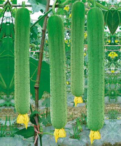 简介:极早熟,从定植至始收30-40天,抗枯萎病。植株蔓生,生长势和分枝性中等。主蔓第5-7节着生第一朵雌花,嫩瓜长棒形,纵径26-38cm,横径5-6cm,单瓜重800-1000g,外皮深绿色,披白霜,耐老熟,瓜肉鲜嫩,品