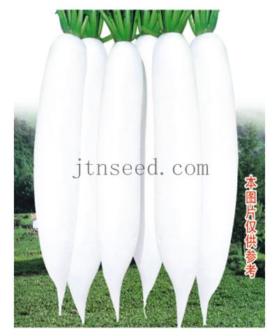 简介: 特性:①适合于早春保护地和高冷地栽培。②草姿开展,叶数少,适于密植,抗抽苔,不易糠心。③肉质清脆,有甜味,口感好。④根皮纯白,很少发生须根及裂根。⑤播种后60天采收,单根重1.4-1.6kg,可延期收