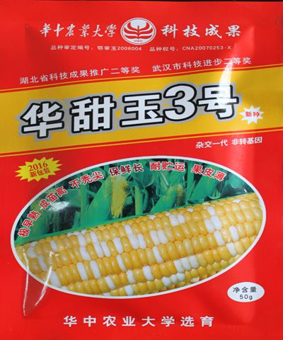 简介:华甜玉3号是华中农业大学选育的早熟水果型超甜玉米单交种,株高210cm,穗位高68cm,穗长19-20cm,穗行14-16行,单穗重300g左右。鲜穗具有香、甜、柔嫩、奶油风味、生熟两吃、口感极好等特点;果穗整齐,