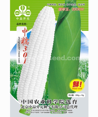 简介:中糯301是中国农业科学院作物所育成的白粒糯玉米单交种。近几年来在全国各地布点种植表明,2002年通过北京市品种审定委员会审定。2003年通过国家审定。特征特性:具有适应性广,抗病性强,植株较矮