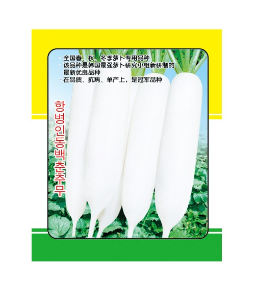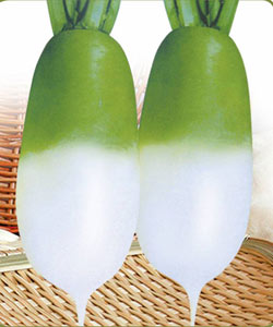 简介:晚抽薹,春播美浓系列品种60天左右采收,根重0.8 kg -1kg,根径6cm左右.纯白首,加工出口,腌制作汤,生吃等均可。根型美及糠心晚,商品性佳。
