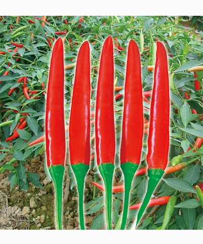 简介: 大果型朝天椒 1.早熟单生大果型朝天椒品种,抗病性强,适应性。 2.植株长势旺,分枝强,挂果多,收获期长,产量高。 3.果形整齐美观,嫩果绿色,成熟果红色,辣味浓,干椒品质佳。 4.果长7.5cm左右,果粗