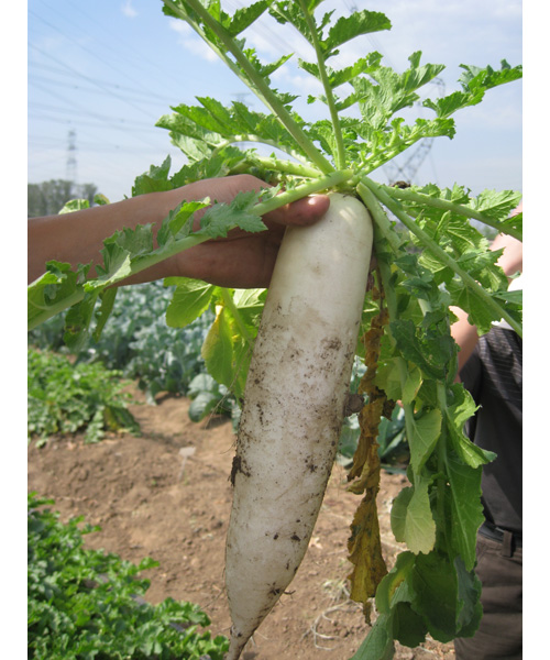 简介: 1. 半板叶半花叶型,叶片半直立,抗热性好,兼具一定耐寒能力,可适当延长播种期。 2. 根形好,上下顺直,根皮光滑,通体洁白。 3. 生长速度快,约60天左