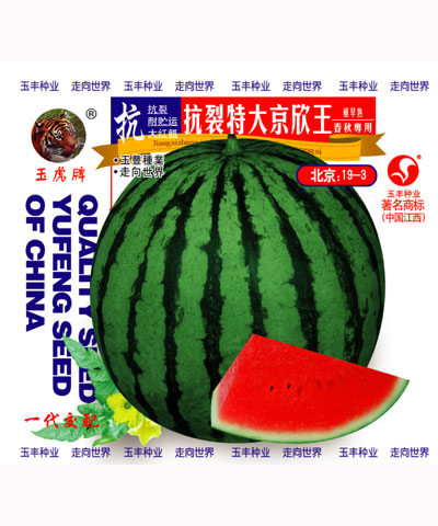 简介:本品种为杂交一代西瓜品种,长势健壮,高抗枯萎病,适应性强,易座果,单瓜重13公斤左右,最大单瓜重23公斤,在气候、土壤、肥水管理条件均好的情况下,亩产万斤左右。果形椭圆、花皮、果肉大红瓤,中心含
