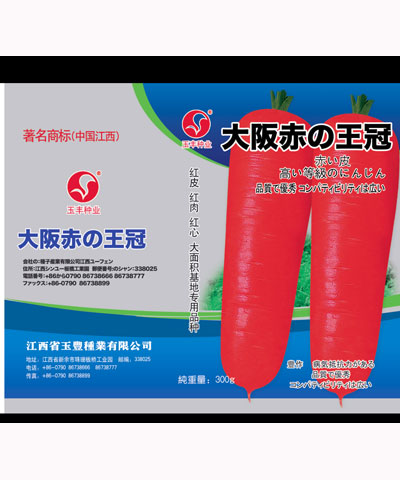 简介:本品种为鲜食加工两用型品种,生长期95天左右,具有10-12片叶,叶色浓绿,肉质根长20-24cm,形状圆柱形,红皮、红肉、红心、品质脆嫩,含有丰富维生素及胡萝卜素及含糖量较高,适应鲜食、榨汁、腌制、脱水