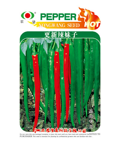 | 简介:品种:更新辣妹子是江西农望高科技有限公司育成的杂交辣椒组合。是针对北方地区嗜辣及加工用等消费定向选育而成的新组合。特征特性:早熟,株型紧凑,株高55厘米,株幅56厘米,分枝力强,连续座果好 |