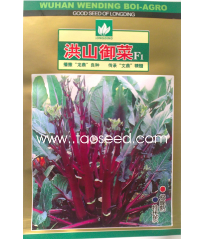简介:特征特性:从洪山农家品种中选育而成,极晚熟,优质红菜苔新品种,植株高大,外叶多,定植后90天采收,苔紫红色有蜡粉,长35-40cm,粗2-2.5cm,苔重50-80g,特优质, 口感好,产量较高,春节期间大量上市