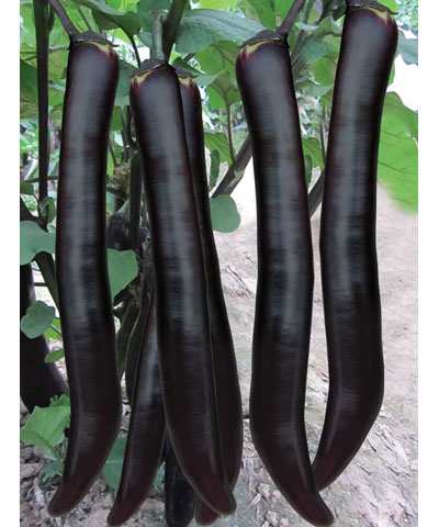 简介: 该品种为早熟一代杂交种,株高70cm,开展度75cm,生长势强,分枝结果多,果长棒形, 紫黑色,果长35cm左右,直、粗大、底尖。单果重400-600g,果形美观,黑中透亮,籽少肉嫩,果顺直光亮美观,商品性