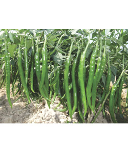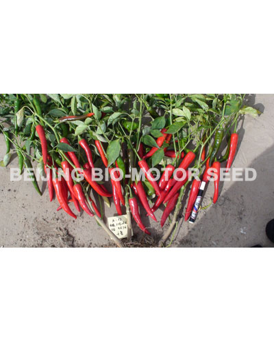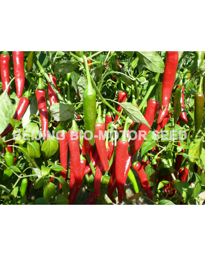 简介: 中熟长线椒品种。植株生长势较强,株型好,分枝多,叶片小,叶色浓绿;果实细长、顺直,果长19-22cm,果宽约1.8cm;青果深绿色,老熟果红色,果实红熟后硬,前后期果实一致性好,单果