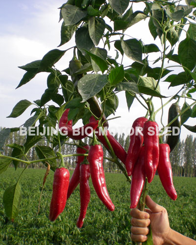 简介:特征特性:1.新引杂交一代铁皮椒,干椒皮厚,色价高。2.早熟,生长旺盛,叶片浓绿,抗病、抗水。3.坐果能力强,青椒转红快,红果整齐,成品率高。4.果长16-20厘米,果径约3-5厘米,干果单重7-8克。栽培要点