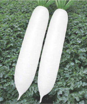 简介: 1、根部全白,长圆型,是大棚露地春季种植的专用品种。 2、叶片少,不易抽苔,根膨大快。 3、单根重1.2-1.5kg,最大可以达到3-4kg,大了也不糠心。播后55-60天收获,10000kg667