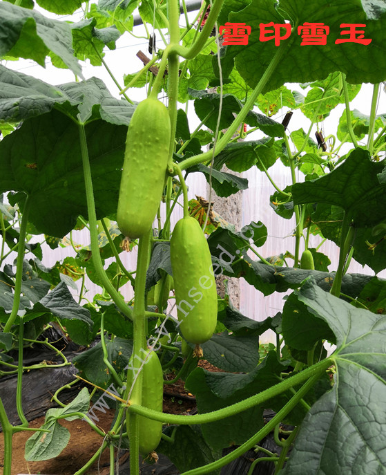 简介: 强雌性白黄瓜杂交品种。植株生长势强,叶色浓绿,分枝中,主蔓结瓜为主,节节有瓜,带瓜能力强。瓜圆柱形,瓜长14-16cm,白刺稀疏,瘤中小,瓜条順直,瓜条白色附均匀浅绿色 ,油亮,口感脆甜,甜味浓,无