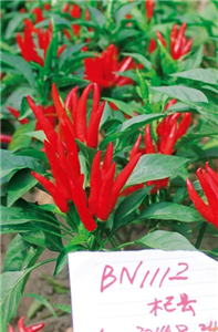 简介:早熟 果形美观1.早熟簇生朝天椒品种,抗病性强。2.株型整齐,分枝力强,每簇10-12个果,产量高。3.果形美观,青果亮绿,红果鲜红,有光泽,硬度好,辣度高。4.果长7.6-7.9cm,果粗0.9-1.1cm,单果重3.9-4