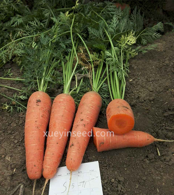 简介: 1、杂交一代品种,适合春秋两季播种。 2、抗抽薹性稳定,成熟期100天左右,收尾早 3、根形顺直,收尾钝圆,表皮光亮,颜色鲜红,三红率高,根长18~20cm,单根重200~300g,整齐一致,商品率高,产量高,口感