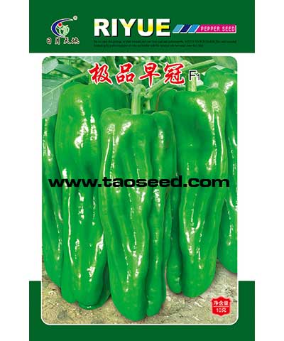 简介:大果型皱皮泡椒新品种,果更大、果更长、更抗病、产量更高、更耐贮运。极早熟,果实长灯笼形,皮薄质脆,微辣,果色浅绿有光泽;果长16-20cm,果粗5-6cm,单果重90-150g;植株长势稳健,前期低温易坐果,连