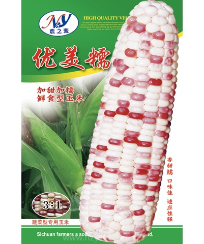简介:早中熟,植株高约1.8m,适应性强,籽粒彩色,香甜糯,口味佳,穗长约18-26cm,果穗长锥形,穗行16-18,鲜果穗重可高达500克左右,株形紧凑,籽粒白红紫相间,排列整齐、紧密,皮薄好吃,亩产鲜果穗高达200