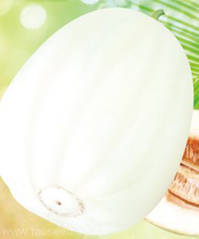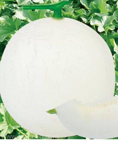 简介:早熟厚皮甜瓜杂交一代种,雌花开花后35天左右成熟,果实高圆,果皮白色,果面光滑,但高湿度或低节位坐果时,果面偶有稀少网纹,单瓜重3公斤左右,果肉由内而外呈白绿色,可溶性固形物含量18%,肉质软