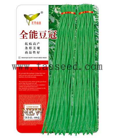 | 简介:该品种植株蔓生,早熟,坐荚集中且连续坐荚能力强,种子籽粒红色,条色绿,叶小条长,长势强,条形好,粗细均匀,无鼠尾,品质优秀,极耐储运,抗病力特强,不易鼓籽,荚长80cm左右,最长可达90cm,亩产400 |