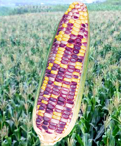 简介: 最新育成的在同一果穗上同时具有90%黑紫粒,10%白花粒鲜食专用玉米品种。品质特优,糯性好、甜度高,高产大穗、商品性好、穗行整齐、无秃尖,穗长22厘米,鲜穗单重350克左右,株高170厘米,生育期