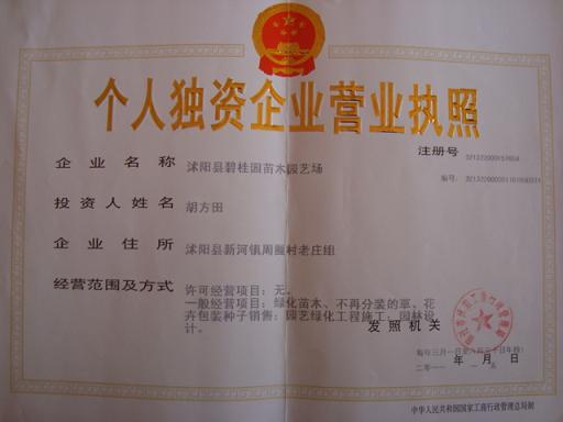 公司名称:沭阳县碧桂园苗木园艺场